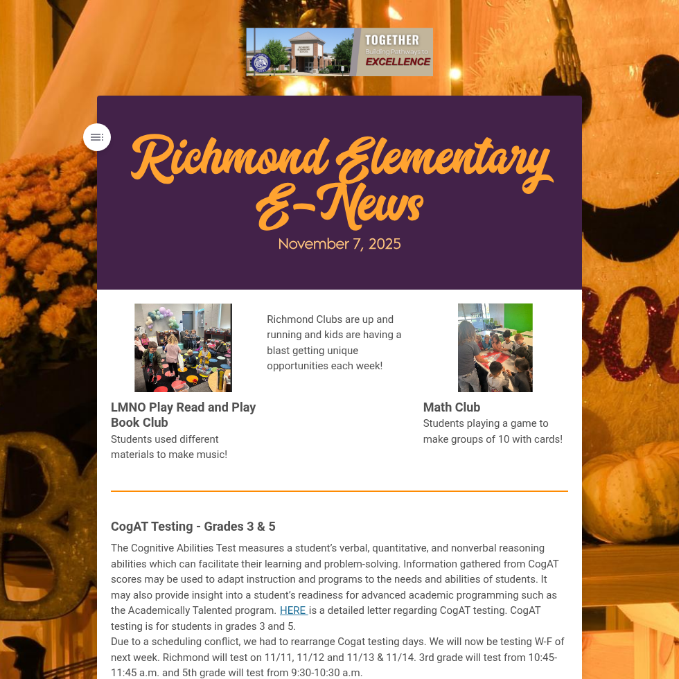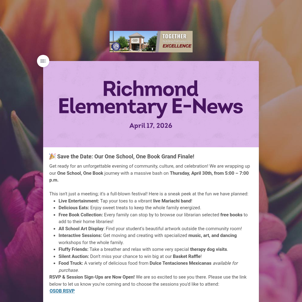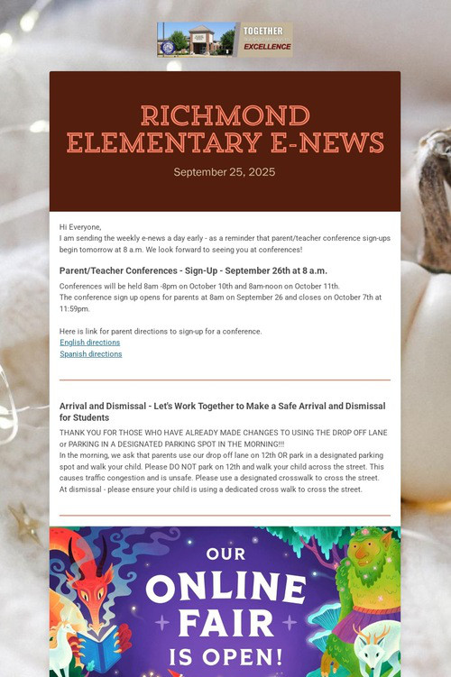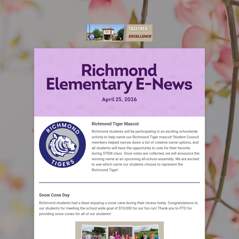 Newsletters are sent out via Finalsite