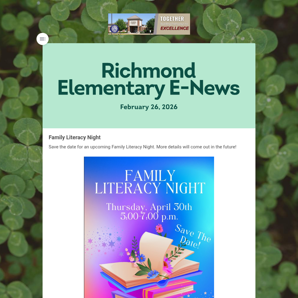 Kindergarten Registration for the 2026-2027 school year will be January 26th - February 20th. Click here for more information.